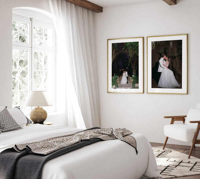 our beautiful wall art pieces of your favorite wedding day photos. These high quality professionally printed & framed pieces come in a